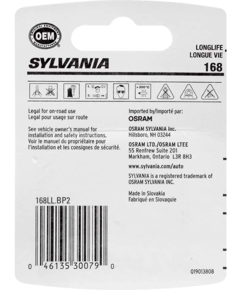 - 168 Sylvania Long Life Mini Bulb performs twice as long as any standard miniature bulb