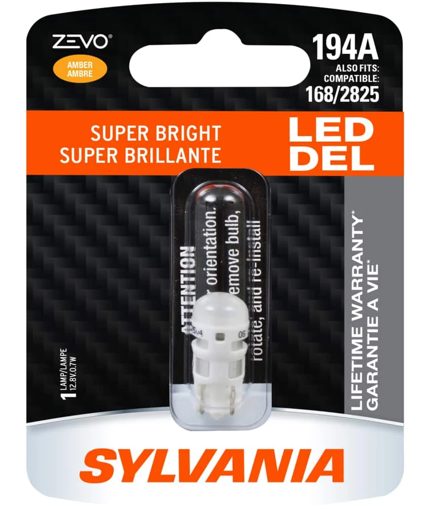 The SYLVANIA 194A Amber ZEVO® LED bulbs deliver a brighter, sharper light. As easy as changing a lightbulb, you can have improved performance and safety for interior and exterior applications. World-class manufacturing and high-quality guarantee an extended lifetime of your ZEVO® bulbs.