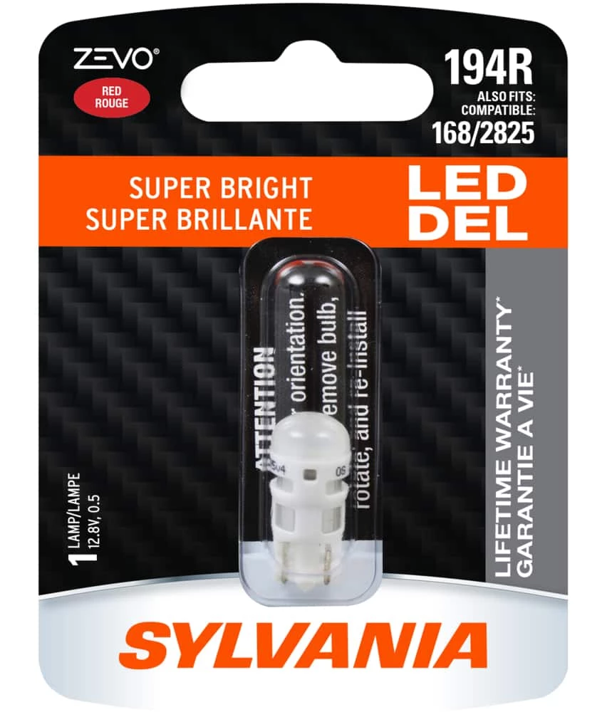 The SYLVANIA 194R Red ZEVO® LED bulbs deliver a brighter, sharper light. As easy as changing a lightbulb, you can have improved performance and safety for interior and exterior applications. World-class manufacturing and high-quality guarantee an extended lifetime of your ZEVO® bulbs.