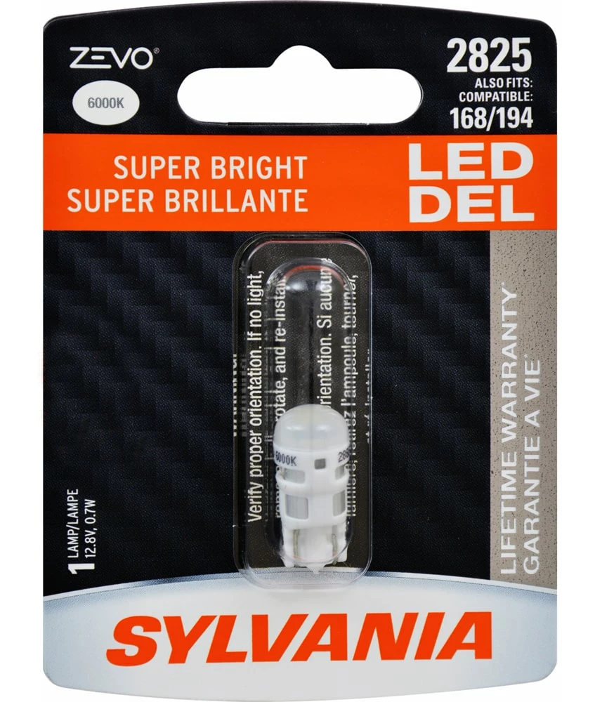 The SYLVANIA 2825 ZEVO® LED bulbs deliver a brighter, sharper light. As easy as changing a lightbulb, you can have improved performance and safety for interior and exterior applications. World-class manufacturing and high-quality guarantee an extended lifetime of your ZEVO® bulbs.