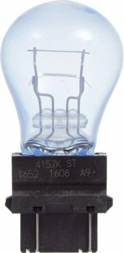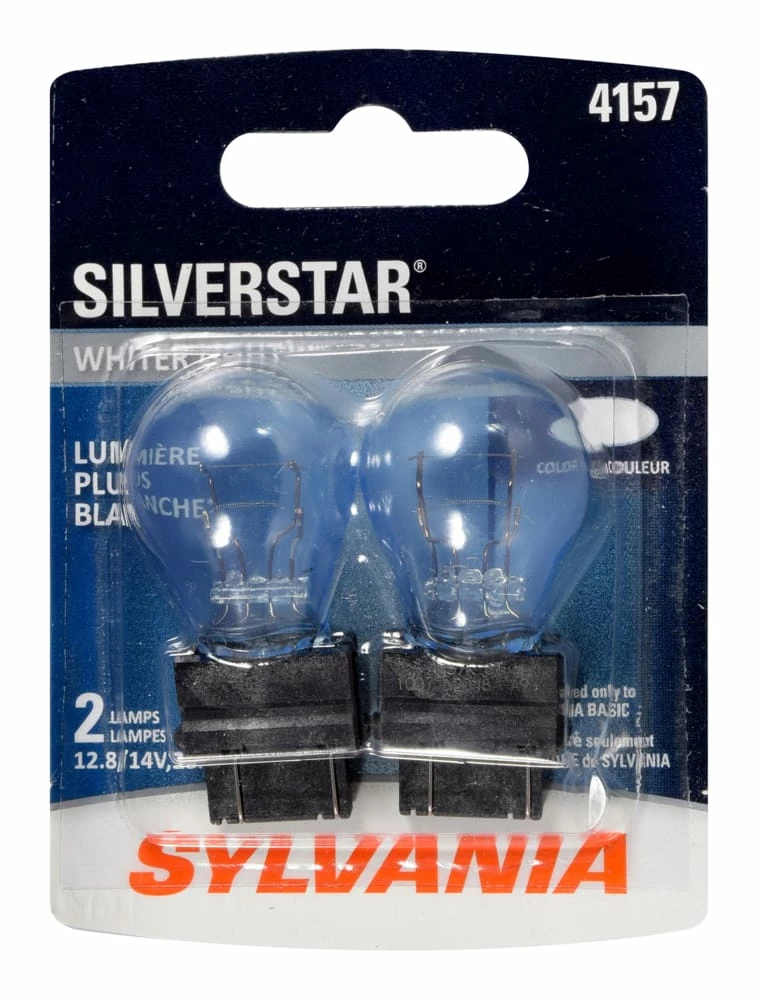 The SYLVANIA 4157 SilverStar® High Performance mini bulbs deliver a whiter light. SYLVANIA achieves this using a specially design filament, propriety gas mixture as well as a lamp coating that shifts the colour temperature towards a whiter light. It produces 100% street legal light.