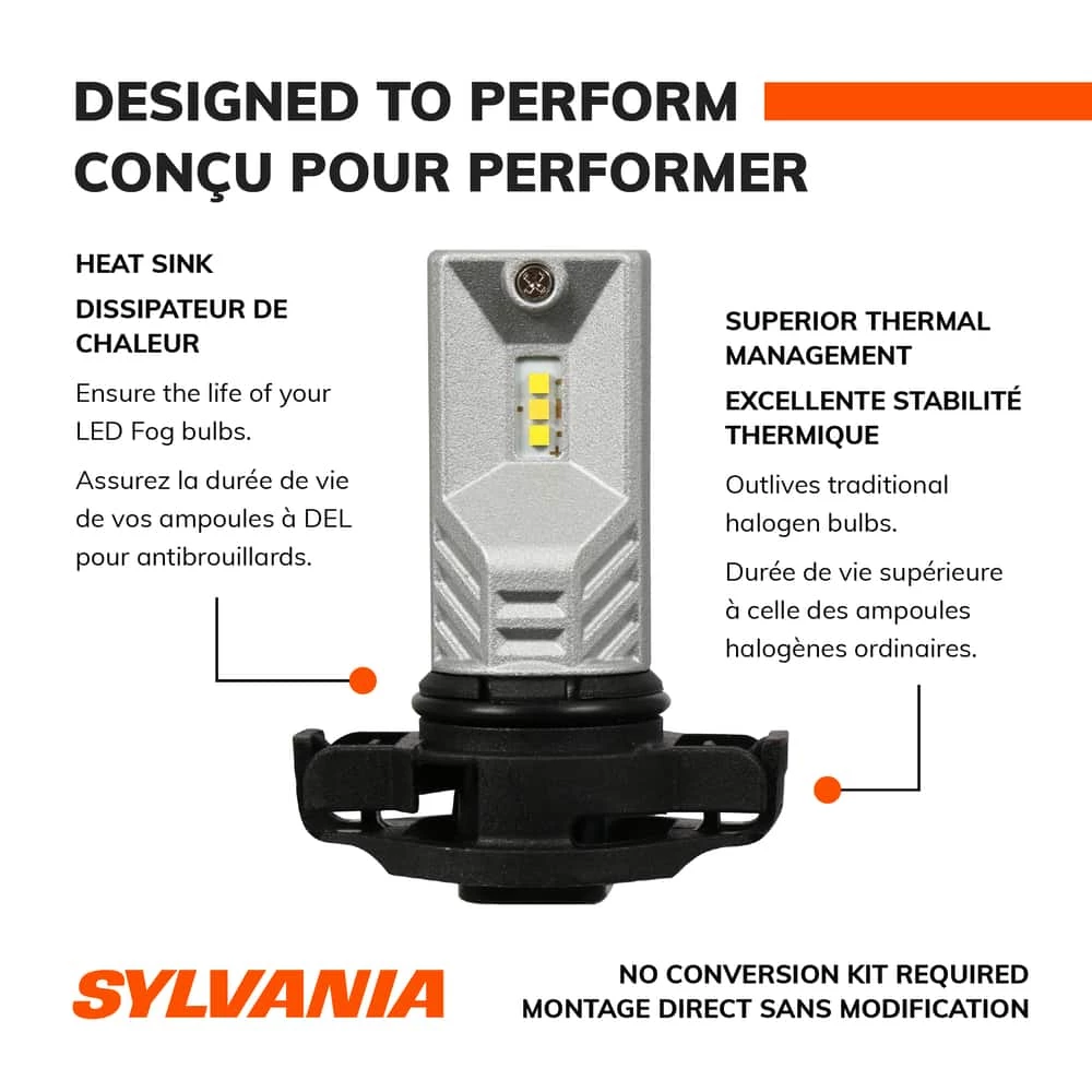 The SYLVANIA 5202 ZEVO® LED lets you update your vehicle’s fog lights with the stylish look of an LED direct replacement bulb to match your HID or LED forward lighting system! Engineered to provide the ultimate in style and durability, the ZEVO LED Fog bulbs will be sure to turn heads. These elegantly designed direct LED replacement bulbs are made with top grade materials ensuring their durability and superior performance.