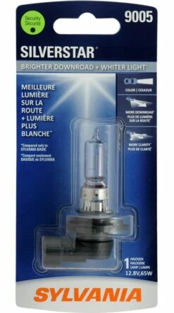 The SYLVANIA 9005 SilverStarĀ® High Performance halogen headlight delivers a brighter and whiter light enhancing your overall experience when driving at night.