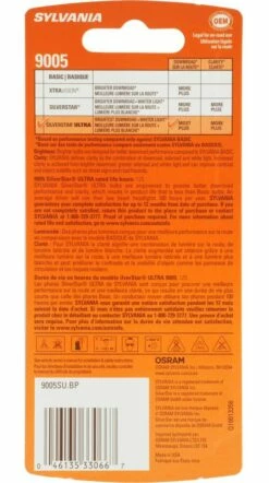 The Sylvania 9005 SilverStar® ULTRA High Performance halogen headlight is Sylvania’s brightest downroad replacement bulb, offering whiter light and greater clarity.