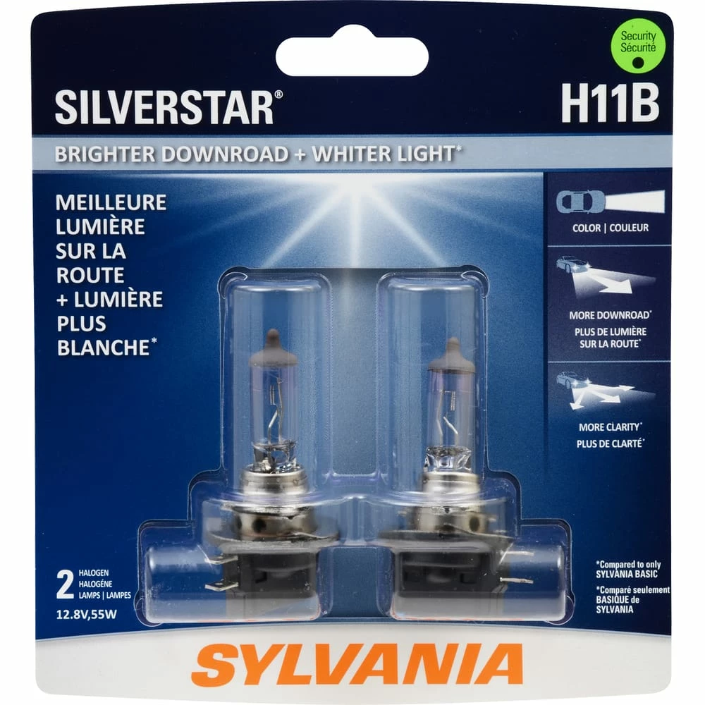 The SYLVANIA H11B SilverStar® High Performance halogen headlight delivers a brighter and whiter light enhancing your overall experience when driving at night.
