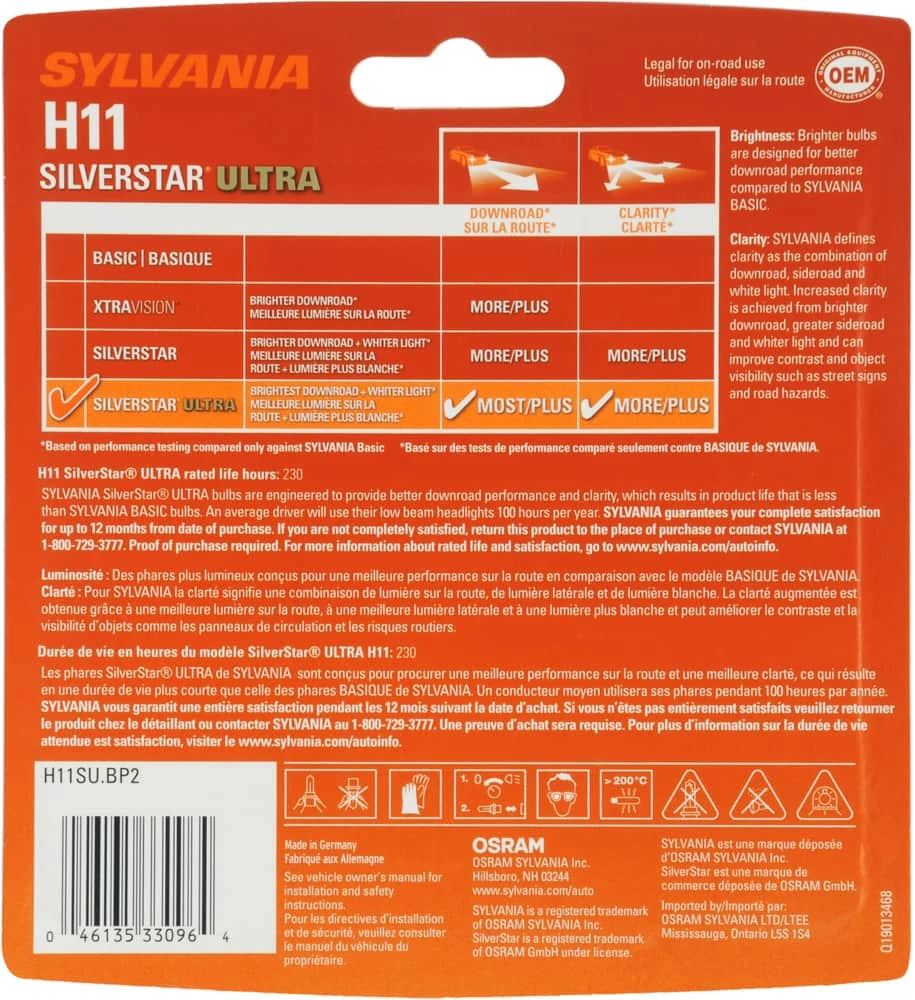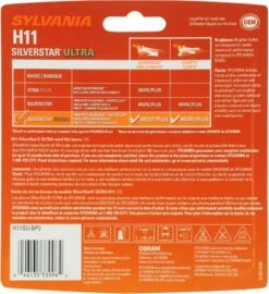 - Sylvania H11 SilverStar® ULTRA Headlight Bulbs are a superior replacement headlight that provides a whiter light for added clarity