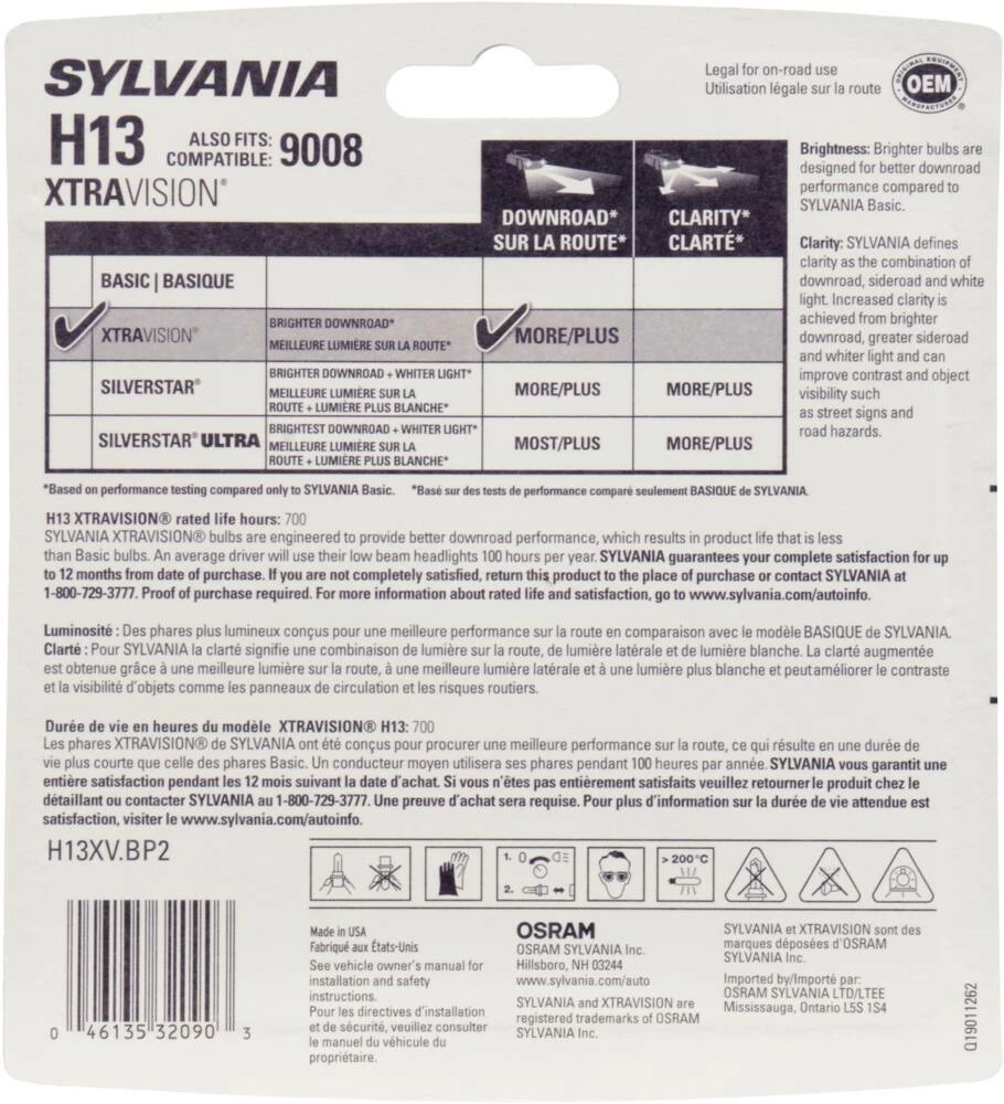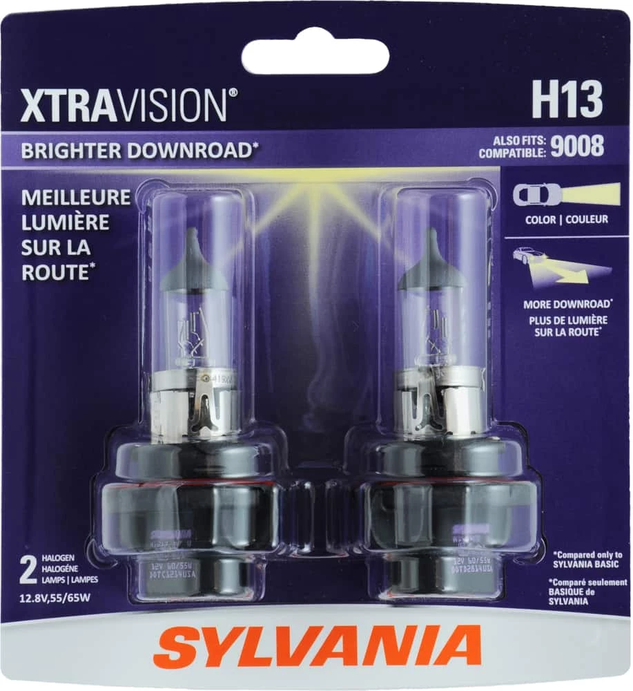 - Sylvania H13 XtraVision® Halogen Headlight Bulbs give you more down-road visibility through superior design and a proprietary halogen gas mixture