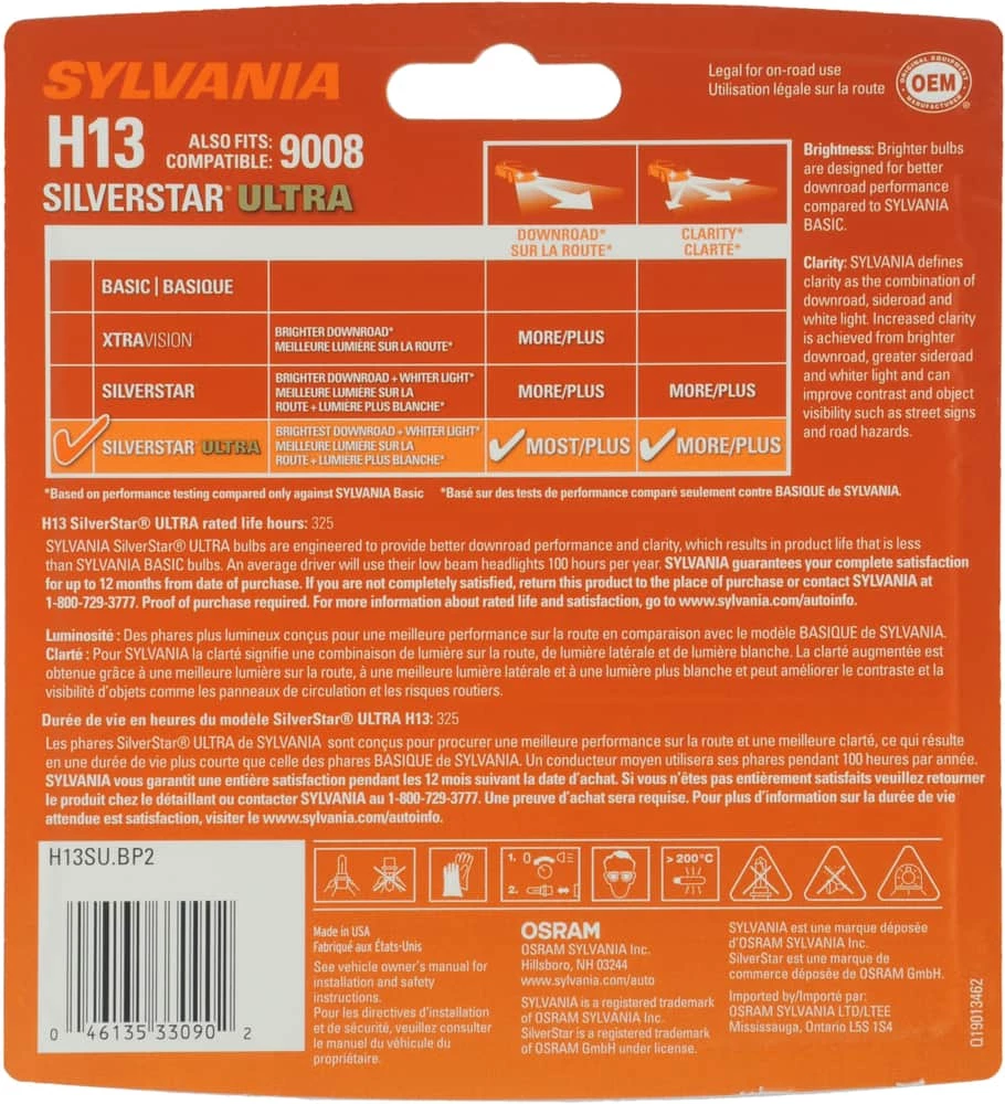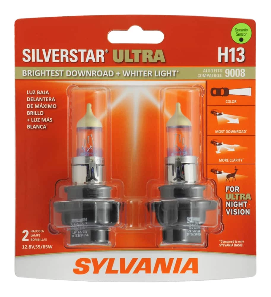 - Sylvania H13 SilverStar® ULTRA Headlight Bulbs are a superior replacement headlight that provides a whiter light for added clarity