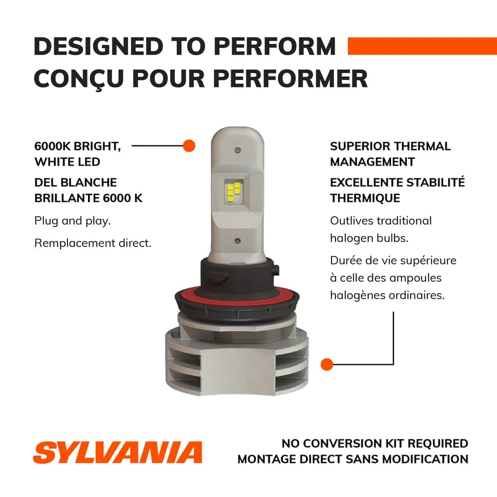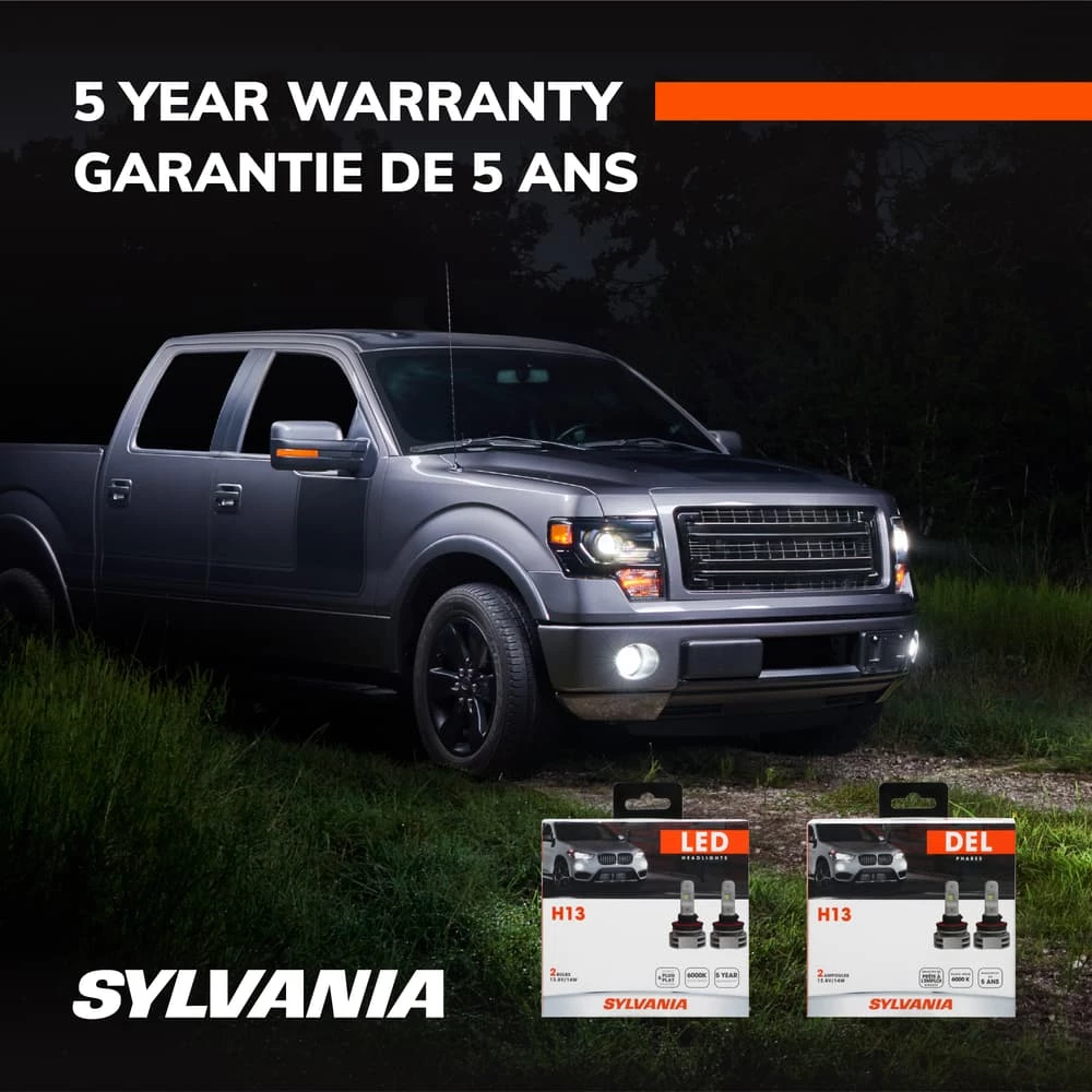 - Sylvania H13LED.BX2 ZEVO 6000K LED Headlights have a superior cool-white light for better clarity